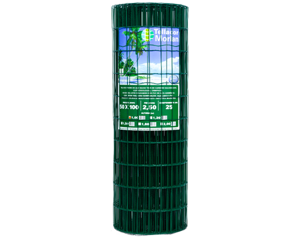 Tela eletrosoldada fabricada com arame galvanizado revestido em PVC.